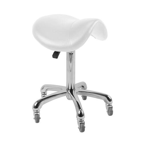 Mocho Sela Odontológico e Estética Estek Perfeita ergonomia para o que trabalha na posição à frente de seu cliente, ou seja, na posição de execução de tratamento. Possui ajuste de altura à gás e rodízios de alta resistência. Sua estrutura cromada garante durabilidade, requinte e beleza. Informações Técnicas: Cor: Branco e Preto Altura min.: 54cm Altura máx.: 74cm Dimensão do assento: 43x36cm Diâmetro na região das rodas: 46 cm Peso: 5,230 Kg : 12 meses Marca: Não Informado