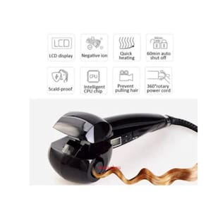 Adequado para comprimentos de cabelo; cordão giratório até o salão. Interruptor liga/desliga com luz indicadora acesa; indicador de calor pronto. Display LCD, operação simples e conveniente; Uma variedade de configurações de temporizador, diferentes efeitos de ondulação; Uma pluralidade de temperatura definida, temperatura ajustável de 140 ? a 230 ?. Sistema de aquecimento poderoso pronto para uso em segundos com recuperação de calor ultrarrápida; controle de direção de curvatura para um acabamento suave ou l (direito/esquerdo/automático). Desligamento automático, se o dispositivo ficar ligado por mais de 60 minutos continuamente, ele será desligado automaticamente. Modelador de cabelo, modelador automático de cabeleireiro LCD Ceramic Hair Curler Wave Shaping Machine (modelador automático LCD, preto) Veja menos