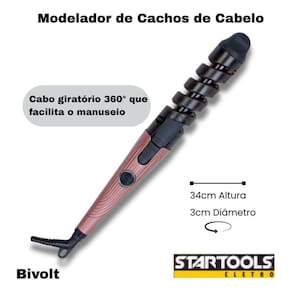 Perfeito para quem deseja criar cachos definidos, com brilho e acabamento  de forma prática e segura. Com potência de 30W e sistema bivolt automático, pode ser utilizado em 127V ou 220V sem a necessidade de ajustes, ideal para uso em casa ou em viagens. Distribui o calor de forma uniforme, evitando danos aos fios e reduzindo o frizz, garantindo cachos médios, soltos e com mais brilho. Possui cabo giratório 360, que facilita o manuseio e evita torções, além de suporte metálico de apoio que protege as superfícies durante o uso. Leve, compacto e fácil de transportar, é ideal para quem busca resultados rápidos e duradouros. Indicado para todos os tipos de cabelo, é um excelente aliado na rotina de beleza. Garanta já o seu e conquiste cachos incríveis onde estiver!