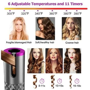 Modelador de Cachos Sem Fio para Cachos Perfeitos 1. 100% Brand new e super alta qualidade. 2. Enrolamento automático de uma chave, 0 operação básica, fácil para novatos. 3. Operação simples, ajuste de temperatura de uma tecla com display LED LCD. 4. Apropriado para todos os tipos dos cabelos e não fere seus cabelos.