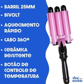 Modelador De Cachos Triondas Ondulador 25mm Bivolt Cacheador Conquiste cachos deslumbrantes e ondas de arrasar com o Modelador de Cachos Triondas Ondulador de 25mm Esse cacheador é simplesmente o 'Mago dos Cachos' que transformará seu cabelo em pura magia