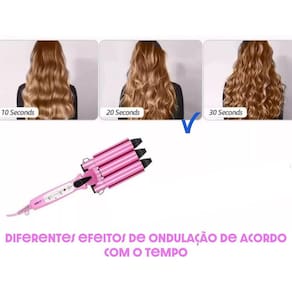 Modo de usar : 1- Deixe o aparelho aquecer por alguns minutos. 2- Com o cabelo seco, pressione o botão e posicione a mecha no barril 3- Aguarde de 5 a 30 segundos tempo define quanto irá ondular 4- Pressione o botão e solte a mecha do barril