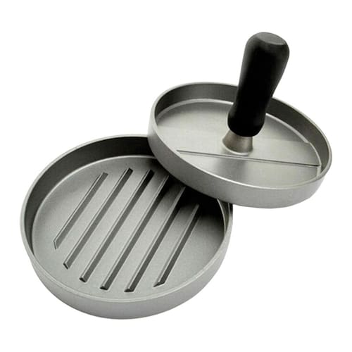 Modelador De Hamburguer Forma De Metal Molde 12CmO modelador de hambúrguer ajuda o trabalho otimizando o tempo, mantendo a qualidade e padrão de todos os hambúrgueres.Confeccionado em metal, o modelador de hambúrguer é uma excelente opção para você preparar deliciosas receitas com agilidade e capricho.Ela permite que você faça hambúrgueres caseiros sempre que quiser, o alimento pode ser retirado facilmente do modelador e sua base é texturizada para dar a aparência de um delicioso hambúrguer grelhado tradicional.Materiais de alta qualidade, ela é composta em metal e sua haste Polipropileno para melhor manuseio.- A haste é rosqueado podendo retirar para melhor higienização.- Praticidade e Agilidade nas receitas.- Facíl retirada do alimento.- Hambúrgueres de até 11cm de diâmetro.- Material: Modelador de metal e haste polipropileno.- Medidas Total AxD : 9cm x ø12cm.- Espessura do Hanburguer: 1,5cm.- Peso: 0,270kg.- Tamanho da embalagem AxLxP : 3,5cm x 13cm x 13cm.