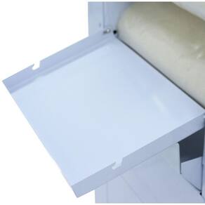 - Possui proteção móvel intertravada, que impede o acesso à área dos rolos e dos demais componentes de movimentação dos feltros e que, ao aberta, efetua a parada imediata