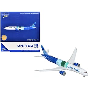 - Novo modelo de avião fundido sob pressão em escala 1/400 da aeronave comercial Boeing 787-9 com abas abertas “United Airlines - The Future is SAF” (N24988) Modelo fundido sob pressão branco e azul com listras da GeminiJets.