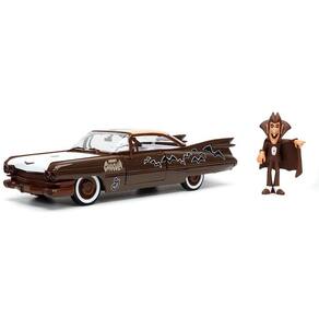 Jada 1959 Cadillac Coupe DeVille marrom e branco com gráficos e Count Chocula Diecast estatueta Hollywood Rides Series 1/24 modelo de carro fundido - Ótimo produto