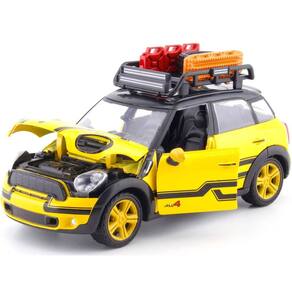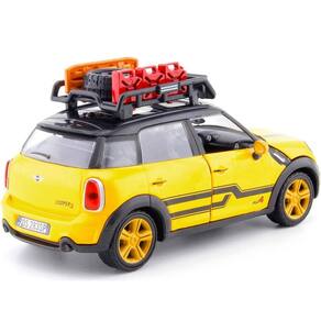 Motormax Mini Cooper S Countryman com rack de tejadilho e acessórios: amarelo metálico e preto, modelo moldado sob pressão da série City Classics 1/24