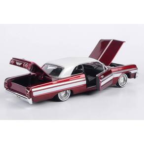 1964 Chevy Impala Lowrider Hard Top Candy Red Metallic with White Top Get Low Series 1/24 Model Car da Motormax 79021
