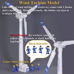 Alerta quente: As lâminas estão no eixo grande, retire-as antes de montar. Especificações: Material: plástico ABS Conteúdo da embalagem: 2 tampas pequenas para eixo. 2 tampas grandes para eixo. 1 base 4 trabalhadores. Capacete de segurança ou penteado (aleatório) * 4 1 tampa para gerador. 4 lâminas. 1 eixo do rotor. - Modelo de turbina eólica: como a turbina eólica real, o modelo de brinquedo vem com 3 lâminas e 1 torre alta. Mais importante, as lâminas podem girar conforme adotam um design de cordão. - Design de cordão: as lâminas no modelo de gerador eólico podem girar sem a necessidade de baterias porque adota um design de cordão. Para enrolar, os jogadores só precisam girar as lâminas no sentido horário durante várias rodadas. - Fácil de montar: o brinquedo modelo gerador de vento vem com peças independentes antes da montagem. Para obter um modelo finalizado, a montagem é necessária e o trabalho é fácil, até mesmo as crianças podem terminar de forma independente. - Lâminas dobráveis: as lâminas do brinquedo modelo turbina eólica podem ser dobradas facilmente. Esse design não apenas o torna portátil, mas também evita que as lâminas danifiquem facilmente. - Modelo saudável e seguro: o modelo de moinho de vento é feito de material plástico ABS de qualidade que não contém nenhum ingrediente prejudicial. Além disso, a borda é redonda em vez de afiada, especialmente as lâminas. - 55 cm Tamanho grande: o brinquedo gerador de vento não é modelo samll e vem com um tamanho grande. A altura do modelo de turbina eólica após a montagem é de 55 cm. - Kit de ciência criativa: o brinquedo de turbina eólica é muito sutil para aquelas crianças que estão interessadas em ciência e natureza. Com o modelo, ele não apenas melhora a habilidade motora das crianças, mas também ajuda as crianças a aprender como a energia eólica é gerada. - Aviso quente: as lâminas estão na torre grande, retire-as antes de montar. Os trabalhadores receberão capacetes de segurança amarelos ou penteados pretos aleatoriamente, sua compreensão será apreciada.