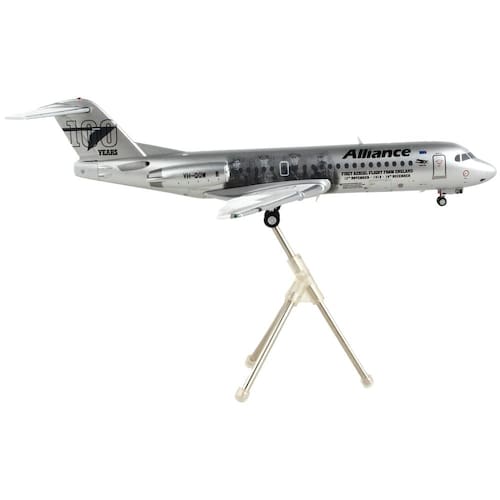 - Acabamento metálico prateado com pintura autêntica da Alliance Airlines e gráficos históricos.