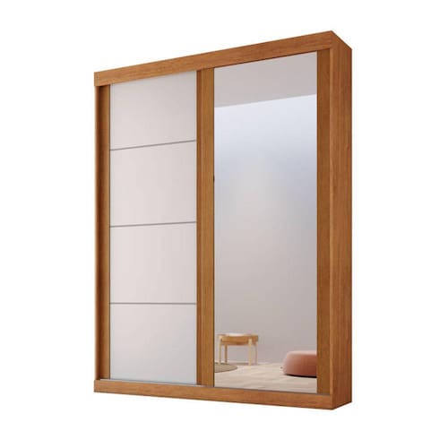 Modulado com design bem diferenciado que irá te proporcionar conforto, qualidade e vai deixar seu quarto muito mais elegante, confira as vantagens deste guarda-roupa.Fabricado em MDP com portas em MDF, possui 2 portas de correr, sendo uma com esplho, 2 gavetas internas com corrediças telescópicas, puxadores em MDF, 2 cabideiros em alumínio, costas inteiras, colméia organizadora, maleiro amplo para que você possa acomodar seus objetos, roupas de cama,etc. Acabamento semi brilho. Interno do roupeiro na cor Branco. Pensado na medida certa para quarto de solteiro, não é mesmo muito legal? não perca!