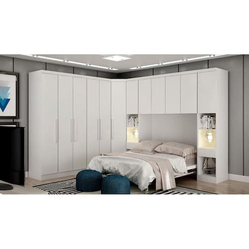 O Modulado Casal Rizon irá mudar o visual do seu quarto, pois ele possui um bom número de compartimentos, além de nichos e várias prateleiras que podem acomodar bolsas, roupas de camas, sapatos e o que mais você precisar para um dia a dia mais prático. Ainda conta com 6 gavetas espaçosas com corrediças telescópicas e 5 cabideiros. Perfeito, não é mesmo? Aproveite!