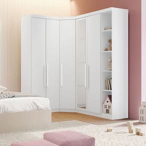 Modulado Closet Completo Espelhado 5 Portas 6 Gavetas - Rizon - Móveis Novo HorizonteO Modulado Solteiro Rizon possui um excelente padrão de qualidade combinando com qualquer ambiente, agregando beleza e sofisticação. Possui vários compartimentos, espaço para peças penduradas e dobradas, além de nichos que podem acomodar bolsas, roupas de camas, sapatos, brinquedos, decorações e o que mais você precisar para um dia a dia mais prático. Super versátil e elegante, encaixando perfeitamente no seu espaço. Confira e aproveite!Faz parte do anúncio:1 Módulo Cantoneira1 Módulo Canto Oblíquio2 Módulos 2 Portas 3 GavetasObs: Objetos de decoração, cama e colchão não acompanham o produto.Particularidades do Modulado:Características:- 100% MDF- Excelente espaço interno