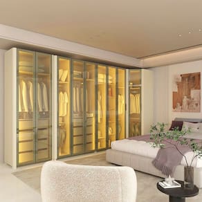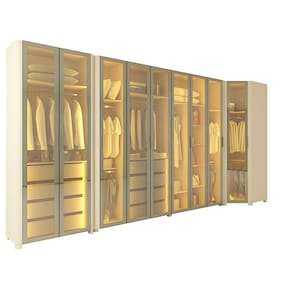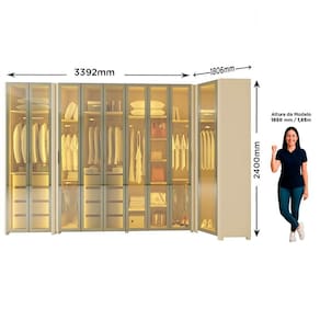 O Modulado Innova combina modernidade, praticidade e organização em um conjunto planejado para transformar o quarto. Com módulos inteligentes, oferece amplo espaço interno e soluções que facilitam a rotina. O canto curvo com cabideiro em L otimiza o aproveitamento do ambiente, ampliando a capacidade de armazenamento e trazendo praticidade à organização. As gavetas com corrediças telescópicas proporcionam abertura total, deslizamento suave e maior durabilidade, garantindo conforto no uso diário. Seus acabamentos modernos, aliados à iluminação em LED de tom quente, valorizam cada detalhe e criam uma atmosfera sofisticada e acolhedora. Acabamento da Prateleira: Pintura UV Escala de Brilho da Prateleira: Brilhante Possui Cabideiros: Sim Acabamento da Gaveta: Pintura UV Escala de Brilho da Gaveta: Brilhante Possui Organizador de Gaveta: Não Acabamento da Porta: Cristal Escala de Brilho da Porta: Brilhante Material do Puxador da Porta: Alumínio Acabamento dos Pés: Pintura Altura dos Pés: 5 cm Altura Máxima dos Pés: 5.0000 Ambiente Principal: Quarto codigo_ean: 7900288256690 Complexidade da Montagem: Alta: deve ser montado por um montador especializado Cor: Off White Cor da Porta: Bege Cor do Produto: Off White Cor Flex: Não Cor Interna: Off White Escala de Brilho: Brilhante Espessura da Estrutura (mm): 15 mm Espessura das Portas (mm): 3 mm Espessura das Prateleiras (mm): 15 mm Espessura do Fundo (mm): 3 mm Espessura do Fundo das Gavetas (mm): 3 mm Gaveta com Chave: Não Guarda-Roupa Suporta Até (kg): 230 kg Informações Complementares: Iluminação por fita LED. Itens Inclusos: 1 Guarda-Roupas, Kit Ferragem e Manual de Montagem Linha ou Coleção: Innova Manual de Especificação Técnica: https://product-hub-prd.madeiramadeira.com.br/906706430/documents/d5da581e-a886-4c5c-951a-2f7f419f5588326564955017599221075836.pdf Manual de Montagem e Instalação: https://product-hub-prd.madeiramadeira.com.br/906706430/documents/d39df56d-128a-44c6-b1a0-e81c0c218c73326564755017599220664757.pdf Marca: Gelius Móveis Material da Gaveta: MDF Material da Porta: Vidro Material da Prateleira: MDF Material dos Pés: Madeira Maciça Material Principal: MDF modular: Sim Montagem Flex: Não Necessita Montagem: Sim Nicho com Cabideiro: Não O Módulo Pode ser utilizado individualmente: Sim Origem do Produto: Nacional Peso: 409 kg Peso Máximo por Gaveta: 5 kg Peso Máximo por Prateleira: 5 kg Possui Calceiros: 03 Possui Capelinha: Não Possui Espaço para Vestidos Longos: Sim Possui Espelho: Não Possui Espelho Interno: Não Possui Ganchos: Não Possui Nichos: Sim Possui Painel de TV: Não Possui Penteadeira: Não Possui Pés: 17 Possui Portas: Sim Possui Prateleiras: Sim Possui Sapateira: Não Produto Montado: Sim Quantidade de Cabideiros: 06 Cabideiros Quantidade de Gavetas: 08 Gavetas Quantidade de Prateleiras: 15 Prateleiras Recomendações de Uso, Manutenção e Limpeza: A limpeza do produto deve ser feita por meio do uso de um pano, umedecido com água, e um pano seco. É importante para fazer a limpeza do móvel nunca utilizar produtos químicos ou abrasivos. Para conservar o padrão de qualidade dos produtos Gelius, nunca arraste um móvel se este estiver cheio. Nunca puxe o móvel de frente para você, pois ele pode balançar e provocar acidentes. Sapatas Niveladoras: Não Sistema de Montagem: Convencional: parafusos, pregos, cavilhas, etc. Suporta Até (kg): 230 kg Tipo de Corrediça da Gaveta: Metálica Telescópica Tipo de Dobradiça/Corrediça da Porta: Metálica Tipo de Gaveta: Interna Tipo de Guarda-Roupa: Modulado Tipo de Madeira Maciça dos Pés: Pinus Tipo de Puxador da Gaveta: Não Possui Tipo de Puxador da Porta: Externo