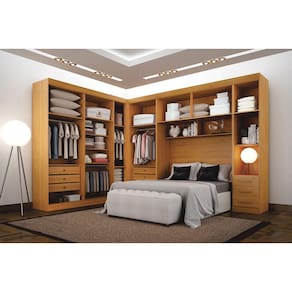 O Modulado Completo Orion possui um design bem diferenciado que irá te proporcionar conforto, qualidade e vai deixar seu quarto muito mais elegante! Fabricado em MDF, possui 7 porta, 9 gavetas com corrediça telescópica, puxador em MDF, 4 cabideiros em alumínio, espaço para colchão de ate 1,58m e maleiro amplo para que você possa acomodar roupas de cama, mala ou sapatos, travesseiros ou organizar seus pertences. Confira nossos modulados e monte o quarto dos seus sonhos!