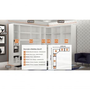 FIQUE ATENTO: Verifique se as medidas disponíveis do seu espaço são compatíveis com as medidas do modulado.