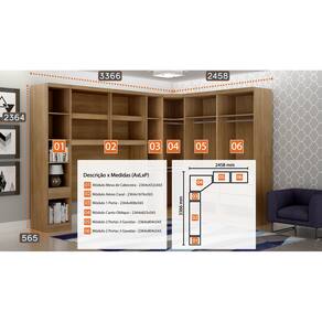 Modulado Completo Casal 6 Portas 6 Gavetas - Rizon - Móveis Novo HorizonteO Modulado Casal Rizon irá mudar o visual do seu quarto, pois ele possui um bom número de compartimentos, tem espaço para pendurar roupas longas, além de nichos e várias prateleiras que podem acomodar bolsas, roupas de camas, sapatos e o que mais você precisar para um dia a dia mais prático. Ainda conta com uma gaveta ao lado da cama que pode ser usada como mesa de cabeceira. Super versátil e elegante, encaixando perfeitamente no seu espaço. Confira e aproveite!Faz parte do anúncio:2 Módulos 2 Portas 3 Gavetas1 Módulo Canto Oblíquio1 Módulo 1 Porta1 Módulo 1 Gaveta1 Módulo Áereo CasalObs: Objetos de decoração, cama e colchão não acompanham o produto.Particularidades do Modulado:Características:- 100% MDF- Excelente espaço interno- 13 prateleiras internas- 7 gavetas com corrediças telescópicas- 5 cabideiros de alumínio- Dobradiças de pressão 35mm- Indicado para colchões até 1,38m ou 1,58m Dimensão Total:Altura: 2,36 metrosLargura: 1,99 x 2,51 metrosDimensões Módulo 2 Portas:Altura 2,36 metrosLargura 0,80 centímetrosProfundidade: 56,5 centímetrosDimensões Módulo Canto Oblíquio:Altura 2,36 metrosLargura 82,7 metrosProfundidade: 69,5 centímetrosDimensões Módulo 1 Gaveta:Altura 2,36 metrosLargura 42,6 centímetrosProfundidade: 56,5 centímetrosDimensões Módulo 1 Porta:Altura 2,36 metrosLargura 40,8 centímetrosProfundidade: 56,5 centímetros Dimensões Módulo Aéreo:Altura 2,36 metrosLargura 1,67 metrosProfundidade: 56,5 centímetrosFIQUE ATENTO: Verifique se as medidas disponíveis do seu espaço são compatíveis com as medidas do modulado.Informações Importantes:.- Produtos podem apresentar diferenças de tonalidades entre a foto na tela e o produto real, devido a calibração de cor de tela.- Limpar com flanela ou pano macio. Não utilizar álcool. Não utilizar produtos abrasivos ou corrosivos.- Nós prezamos pela qualidade da entrega em primeiro lugar, trabalhamos com transportadoras altamente selecionadas e os melhores materiais de embalagem.- A montagem é de total responsabilidade do comprador. Antes de comprar, verifique o espaço disponível para a montagem.- Certifique-se de que o produto caiba em elevadores e vãos de escadas, não fazemos içamentos. Quaisquer despesas deste tipo ficam a cargo do cliente- Garantia de 3 meses contra defeitos de fabricação.