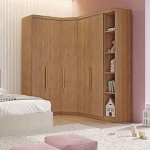 Modulado Completo De Canto Solteiro 5 Portas 6 Gavetas - Linea-Cumaru - Móveis Novo Horizonte