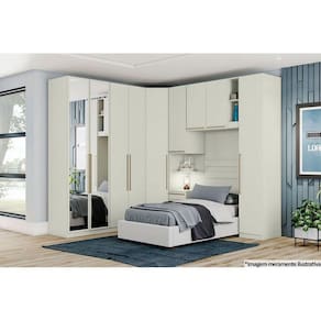 Modulado de Quarto Armário Ponte Aéreo Solteiro MC12 Seletto c/ 2 Portas e 2 Nichos Areia/Jequitibá - Henn