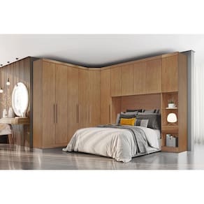 Modulado de Quarto Rizon 5 Peças (1 Armário Ponte + 1 Closet + 2 Guarda Roupas + 1 Complemento) QC202 Freijo Cumaru - Novo Horizonte