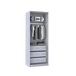 Produto 100% MDF com pintura UV e verniz de alta resistência. Possui puxadores em alumínio e dobradiças das portas com fechamento suave- sistema slow motion. Na parte superior possui uma prateleira com espaço para maleiro e cabideiro em alumínio e na parte inferior, 3 gavetas com corrediças telescópicas e reforço no fundo. O produto possui pés em madeira maciça e reflorestamento com montagem opcional. Acabamento da Prateleira: Pintura Texturizada UV Acabamento da Gaveta: Pintura Texturizada UV Acabamento da Porta: Pintura Texturizada UV Acabamento dos Pés: Pintura Altura dos Pés: 6 cm Ambiente Principal: Quarto Complexidade da Montagem: Média: pode ser montado por mais de uma pessoa e/ou necessite de maior conhecimento para montagem Composição: 100 % MDF Cor: Branco Cor do Produto: Branco Cor Flex: não Cor Interna: Branco Escala de Brilho: Fosco Espessura do Material da Estrutura: 15 mm Gaveta com Chave: Não Itens Inclusos: modulo 2 porta + 3 gavetas + 1 cabideiro +. 1 prateleira. Linha ou Coleção: Modulado Manual de Montagem e Instalação: https://product-hub-prd.madeiramadeira.com.br/864541/documents/567290fe-b61d-443d-8d48-a4832c37a6e91186modulo2pgaveteirodecor.pdf Marca: Móveis Fazzio Material da Gaveta: MDF Material da Porta: MDF Material da Prateleira: MDF Material dos Pés: Madeira Maciça Material Principal: MDF Montagem Flex: não Necessita Montagem: Sim O Módulo Pode ser utilizado individualmente: Sim Origem do Produto: Nacional Pés Reguláveis: Não Peso: 108 kg Peso Máximo por Gaveta: 5 kg Peso Máximo por Prateleira: 4 kg Possui Espelho: Não Possui Pés: 04 Possui Portas: 02 Possui Prateleiras: 01 Possui Rodízio: Não Recomendações de Uso, Manutenção e Limpeza: Usar pano levemente umedecido com agua Sapatas Niveladoras: Não Sistema de Montagem: Parafusos atarraxantes, sistema minifix e cavilhas. Tipo de Corrediça da Gaveta: Metálica Telescópica Tipo de Dobradiça/Corrediça da Porta: Metálica Tipo de Guarda-Roupa: Casal Tipo de Módulo: Guarda-Roupa Tipo de Puxador da Gaveta: Embutido Tipo de Puxador da Porta: Externo Marca: Móveis Fazzio