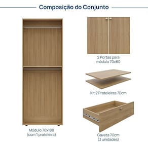 Descubra todas as possibilidades da linha Frame e crie um espaço que reflita sua personalidade com estética, funcionalidade e total liberdade. Altura do Conjunto: 181.7 cm Ambiente: null Ambiente Principal: Quarto Complexidade da Montagem: Média: pode ser montado por mais de uma pessoa e/ou necessite de maior conhecimento para montagem Composição: 100% MDP Cor: Acácia Cor do Produto: Acácia Cor Interna: Marrom Escala de Brilho: Semi-Fosco Informação Complementar: 1x Módulo 70cm X 180cm Frame Acácia Largura: 70 cm Altura: 181,7 cm Peso: 31,68 kg Profundidade: 44,5 cm Necessita Montagem: Sim