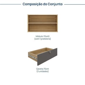 Descubra todas as possibilidades da linha Frame e crie um espaço que reflita sua personalidade com estética, funcionalidade e total liberdade. Altura do Conjunto: 40 cm Ambiente: null Ambiente Principal: Quarto Complexidade da Montagem: Média: pode ser montado por mais de uma pessoa e/ou necessite de maior conhecimento para montagem Composição: 100% MDP Cor: Acácia/Grafite Cor do Produto: Acácia/Grafite Escala de Brilho: Semi-Fosco Informação Complementar: 1x Guarda-roupa Modular 70cm X 40cm Frame Cabecasa Madeiramadeira Acácia Largura: 70 Altura: 41.7 Peso: 15.36 Profundidade: 44.5 Necessita Montagem: Sim