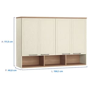Funcionalidade e beleza Possuindo 4 portas com dobradiças anti impacto e nichos para acomodar objetos da sua preferencia. Além de 2 prateleiras internas com excelente qualidade, para você guardar seus objetos! O modulo possui uma largura de 166,1 cm o que permite acomodar uma cama de 158cm de largura. Esse é o móvel ideal para decorar e deixar o seu quarto bem organizado e elegante.