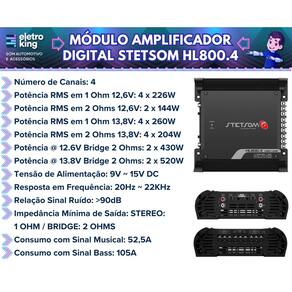 • 01 Módulo Amplificador Digital Stetsom HL800.4 Canais • Manual e Certificado de Garantia.