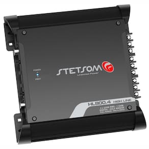 O módulo amplificador digital Stetsom HL800.4 é um dispositivo de áudio automotivo com 4 canais, oferecendo uma potência de saída total de 900 Watts RMS a 1 Ohm. Projetado para proporcionar alta qualidade sonora e eficiência, este amplificador é ideal para sistemas de som automotivo que requerem potência elevada e clareza de som. Seus recursos incluem um design compacto, proteção contra curto-circuito e sobreaquecimento, e controle de ganho ajustável. É uma excelente escolha para quem busca um som potente e nítido em seu veículo. Possui recursos independentes nos canais Frontais e Traseiros como o LEVEL para ajustar o nível do sinal de entrada e Crossover, permitindo escolher entre atuação em LOW-PASS, HIGH-PASS ou FLAT (FULL-RANGE).
