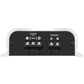Classificado como mono, tem um canal com potência máxima de 250 Watts RMS e impedância de 2ohms.