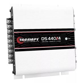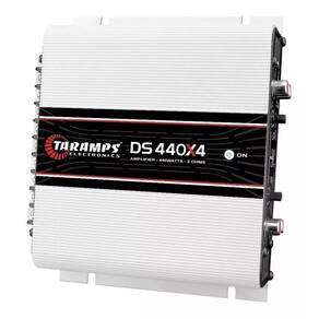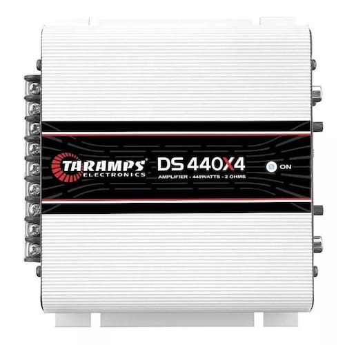 Módulo Amplificador Taramps Ds 440x4 Canais O amplificador DS 440×4 é desenvolvido com a mais alta tecnologia e desempenho para sistemas de som automotivo. É estéreo, com potência máxima de 440Watts RMS com impedância de 2 OHMS, e 4 canais de 110W RMS. Com um tamanho que cabe na palma da mão, o DS 440×4 é FULL RANGE tocando todas as frequências na medida certa para você. Informações Técnicas Classe De Operação Classe D Número De Canais 04 Potência Máxima @ 12,6 Vdc - 2 Ohms: 440 W Rms (4 X 110 W Rms) @ 12,6 Vdc - 4 Ohms: 276 W Rms (4 X 69 W Rms) 2 Canais Bridged: @12.6 Vdc - 4 Ohms: 440 W Rms (2 X 220 W Rms) Sensibilidade De Entrada 250m v Relação De Sinal/ruído >89d B Resposta De Frequência 8 Hz ~ 26 K Hz(-3d B) Crossover High Pass (hpf) 90 Hz(-12d B/8ª) Fixo Crossover Low Pass (lpf) 90 Hz (-12d B/8ª) Fixo Impedância De Entrada 18 K Ohms Impedância De Saída 2 Ohms Sistema De Proteção Curto Na Saída Tensão De Alimentação Mínima: 8 Vdc Tensão De Alimentação Máxima: 16 Vdc Consumo Em Repouso: 0,8 a Consumo Máximo Musical @12,6 Vdc 23,5 a Consumo Máximo Em Sinal Senoidal 47 a Dimensões (lxaxp): 160 X 44 X 145mm Peso: 0,60 Kg Ean 7898556844338