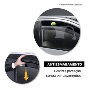 Funções & características: Proteção antiesmagamento, função obrigatória exigida por resolução contran e pelo código de transito brasileiro, que evita acidentes nos 4 vidros elétricos do veículo. Realiza automação dos 4 vidros elétricos Função de descida e subida automática através dos botões one-touch: para abrir e fechar os vidros não é preciso pressionar até o fim Temporizador de 1 minuto dos botões da porta do motorista ao desligar o carro ou abrir as portas Proteção contra fechamentos indesejados ao ativar o botão interno de trava das portas Proteção pelos botões: se um obstáculo for encontrado durante a subida, o vidro irá retroceder cerca de 50% do tamanho total da janela. Proteção por alarmes: se um obstáculo for encontrado durante a subida, o vidro abrirá totalmente e iniciará até 4 novas tentativas de fechamento. Caso não consiga fechar, ficará parado aberto 5 centímetros abaixo do obstáculo Memória e-prom: não é preciso reprogramar o módulo caso a bateria acabe ou seja desconectada Reposicionamento: a função one-touch será desativada ao realizar 10 comandos no mesmo vidro sem atingir o fim do curso. Para reativar a função, é necessário realizar a descida completa do vidro Oferece conforto, praticidade e segurança ao acionar os vidros elétricos Consumo em stand by: inferior a 1ma conforme exigência das montadoras Baixo consumo que preserva a bateria Tensão: 10v a 16v