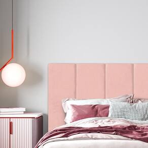 Anuncio referente a um modulo de cabeceira estofada ROSA na medida de 60x20 cm; Fácil instalação, sem furos na parede, sem sujeira, já vem com a FITA Dupla Face para fixação; A cada unidade comprada Acompanha: 1 Modulo de Cabeceira 20x60cm Quantidade ideal: Solteiro - 5 módulos Cama Casal Comum - 7 módulos Cama Queen - 8 módulos Cama King - 10 módulos Ean: 7804393728595