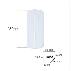 Módulo de canto com grande espaço interno. Dobradiças com amortecedor. 100% MDF com painéis de 15mm e 25 mm. Pintura em 7 camadas de tinta, proporcionando melhor resistência e durabilidade. Puxadores em alumínio, tendo melhor acabamento e evitando ferrugem. Corrediças telescópicas resultando deslizamento suave. Ideal para quartos pequenos e modular juntamente com demais módulos da linha. Acabamento da Gaveta: Pintura Texturizada UV Acabamento da Porta: Pintura Texturizada UV Acabamento da Prateleira: Pintura Texturizada UV Acabamento dos Pés: Acompanha Banqueta: Acompanha Cama Auxiliar: Acompanha Colchão: Acompanha Lâmpada: Acompanha Suporte para Fixação/Trilho: Altura do Estrado até o Chão: Altura do Estrado Superior até o Chão: Altura dos Pés: Ambiente Principal: Quarto Cabeceira Estofada: Cama Auxiliar Acompanha Colchão: Cama Auxiliar com Rodízio: Cama Auxiliar Suporta Até (kg): Complexidade da Montagem: Alta: deve ser montado por um montador especializado Composição: MDF 15mm e 25mm Cor: Branco Cor da Banqueta: Cor do Produto: Branco Cor Flex: Cor Interna: Branco Enchimento da Banqueta: Escala de Brilho: Semi-Brilho Espessura do Espelho: 3 Espessura do Material da Estrutura: 15 Espessura do Vidro: Fita Integrada: Fixação Box: Fixação na Parede: Formato do Espelho: Gaveta com Chave: Não Informações Complementares: Itens Inclusos: 1 Módulo, kit de ferragens e manual de montagem Largura do Colchão Indicado: Linha ou Coleção: Modulada Manual de Especificação Técnica: Manual de Montagem e Instalação: https://cdn2.madeiramadeira.com.br/atributo/sandrin/992966-220183-manual-modulo-cto-45-860x530-novo.pdf Material da Banqueta: Material da Escada: Material da Gaveta: MDF Material da Porta: MDF Material da Prateleira: MDF Material do Estrado: Material do Puxador da Gaveta: MDF Material do Puxador da Porta: Alumínio Material do Suporte/Trilho: Material dos Pés: Material Principal: MDF Medida da Banqueta: Medida da Moldura: Montagem Flex: Necessita Montagem: Sim O Módulo Pode ser utilizado individualmente: Sim Origem do Produto: Nacional Permite a Utilização de Cama Auxiliar: Pés Reguláveis: Peso: 104 Peso da Banqueta: Peso Máximo por Gaveta: 20 Peso Máximo por Prateleira: 15 Peso Suportado pela Banqueta: Peso Suportado por cada cama: Possui Cabideiros: 02 Possui Calceiros: 01 Possui Espelho: Sim Possui iluminação: Possui Moldura: Possui Organizador de Gaveta: Possui Pés: Não Possui Porta Objetos: Possui Portas: 01 Possui Prateleiras: 03 Possui Rodízio: Possui Vidro: Quantidade de Nichos: Quantidade de Prateleiras: 03 Recomendações de Uso, Manutenção e Limpeza: Utilizar pano seco. Resistente à Chuva: Não Revestimento: Revestimento da Banqueta: Rodízio com Trava: Sapatas Niveladoras: Sim Sistema de Montagem: Parafusos, cavilhas, cola, pregos, minifix Suporta Até (kg): Suporta Quantos Pares de Calçados: Tamanho do Colchão Indicado (L x C): Tamanho do Colchão Indiciado Cama Auxiliar: Tamanho do Espelho (A x L): 220 x 40 cm Tampo Basculante: Tipo de Cabideiro: Metálico Tipo de Cama: Tipo de Colchão: Tipo de Corrediça da Gaveta: Metálica Telescópica Tipo de Dobradiça/Corrediça da Porta: Metálica Tipo de Estrado: Tipo de Fixação: Tipo de Fixação do Espelho: Silicone Tipo de Gaveta: Tipo de Guarda-Roupa: Casal Tipo de Lâmpada: Tipo de Madeira Maciça: Tipo de Madeira Maciça da Gaveta: Tipo de Madeira Maciça da Porta: Tipo de Madeira Maciça da Prateleira: Tipo de Madeira Maciça dos Pés: Tipo de Módulo: Guarda-Roupa Tipo de Puxador da Gaveta: Embutido Tipo de Puxador da Porta: Externo Vidro Temperado: