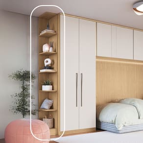 Módulo cantoneira 100% MDF, ideal para acabamentos nas laterais de quartos modulados ou como detalhe funcional no ambiente. Possui prateleiras para organização e decoração, unindo praticidade e design moderno. Pode ser montado do lado direito ou esquerdo, adaptando-se perfeitamente ao seu espaço. Acabamento da Prateleira: Pintura Ambiente Principal: Quarto codigo_ean: 7900288181299 Complexidade da Montagem: Média: pode ser montado por mais de uma pessoa e/ou necessite de maior conhecimento para montagem Composição: MDF Cor: Angelin Cor do Produto: Angelin Escala de Brilho: Semi-Fosco Espessura do Material da Estrutura: 15 mm Itens Inclusos: 1 Módulo, Kit Ferragens e Manual de Montagem Manual de Montagem e Instalação: https://product-hub-prd.madeiramadeira.com.br/504450870/documents/b8821d68-8a9b-49bb-917f-496962f996db9454707200m.pdf Marca: Móveis Castro Material da Prateleira: MDF Material Principal: MDF Necessita Montagem: Sim O Módulo Pode ser utilizado individualmente: Sim Origem do Produto: Nacional Peso: 24,4 kg Peso Máximo por Prateleira: 8 kg Possui Pés: Não Possui Prateleiras: 05 Recomendações de Uso, Manutenção e Limpeza: Limpeza com pano umedecido. Sistema de Montagem: Parafusos. Tipo de Módulo: Cantoneira