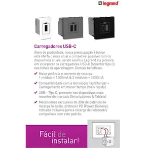 Para tornar a sua vida mais prática, PIAL Plus+ oferece duas versões de tomadas para carregadores USb, permitindo maior flexibilidade na instalação, com o ganho de velocidade de carregamento dos aparelhos, já que as capacidades também foram ampliadas.