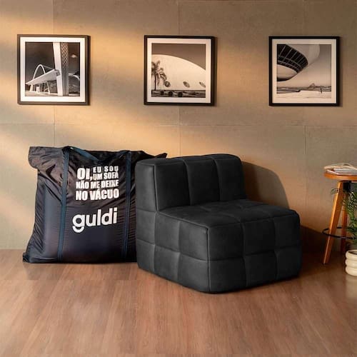 Que tal o Sofá Guldi Popup? A Guldi, reconhecida por sua liderança em inovação no mercado de colchões e conforto, tem o prazer de revelar seu lançamento mais esperado: o Sofá Guldi Popup. Unindo tecnologia, conforto e design, o móvel tem estrutura que garante ótimo suporte aos momentos de uso e mantém o tecido sempre esticado, isso graças ao enchimento em espuma D28, que acomoda bem o corpo e proporciona aconchego sem igual.Embalado a vácuo, seu novo sofá será entregue em uma sacola reutilizável, que facilita o transporte e reduz a pegada de carbono no transporte. Ah, você vai perceber que ele infla em segundos quando tirado do vácuo, esse é o momento em que começará a ficar pronto para desempenhar seu papel e entregar o conforto que você merece - basta esperar mais alguns minutos para o resultado final. Disponível em módulos com e sem braço e em modelo puff, nosso lançamento te permite montar o sofá dos sonhos e se adapta a diferentes ambientes, de apartamentos menores até grandes casas ou espaços corporativos - afinal, é você quem escolhe como ficará sua versão. No fim, é só unir os módulos pelos supervelcros presentes na base e aproveitar bons momentos de descanso e descontração.