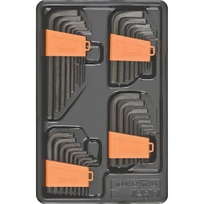 Bandeja em plástico termoformado.As chaves tipo L ou Cabo T são submetidas a ensaios de torque e de dureza para analisar a resistência mecânica e atender aos valores da norma específica.Grande variedade de formas, perfis de pontas e comprimentos para as diversas aplicações automotivas e industriais.As chaves tipo L possuem dois braços de comprimentos diferentes, e ambas extremidades podem ser utilizadas dependendo do local onde será realizado o trabalho. Ao utilizar o braço mais longo tem-se mais torque, enquanto o braço mais curto promove uma operação mais rápida.Apertar ou afrouxar parafusos com sextavado interno.Possui dois braços de comprimentos diferentes, ambos podem ser utilizados dependendo da profundidade que será realizado o trabalho. As ferramentassão produzidas e testadas conforme normas específicas.