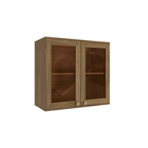 Armário Aéreo p/ Cozinha Curve N649 c/ 2 Portas c/ Vidro Reflecta 80cm Nogueira - Kappesberg