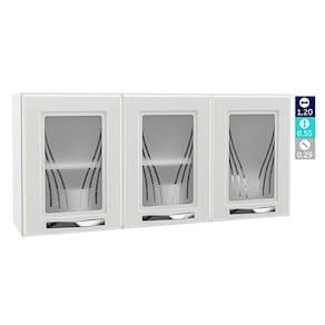 Armário Aéreo p/ Cozinha Star New c/ 3 Portas c/Vidro 120cm Branco - Telasul