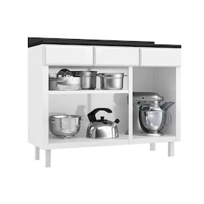 Balcão de Cozinha Topázio 3 Portas e 3 Gavetas c/Tampo 105cm Branco - Telasul