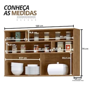 Módulo de Cozinha Armário Aéreo 120cm com Porta de Vidro - Toscana Freijó - Sua rotina mais prática, sua cozinha mais bonita.