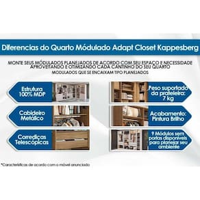 Modulado de Quarto Guarda Roupa Adapt N533 c/ 1 Porta Nogueira - Kappesberg