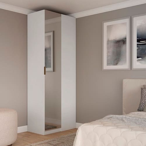 O Guarda Roupa de Canto Reto Modular Altezza com espelho é ideal para você montar seu quarto utilizando o máximo de espaço possível. Móvel para compor com toda a linha modulada Altezza. A linha modulada é ideal para você planejar seu quarto da forma que quiser, utilizando melhor o espaço do seu cômodo, com móveis bonitos e de qualidade! Os módulos são compostos por painéis de 1,5 cm 100% MDF e pintura texturizada com 7 camadas (conferindo maior resistência à riscos e batidas). Com design inspirado nas tendências dos móveis planejados, seu grande diferencial é sua altura de 2,40m (uma das mais altas do mercado). As portas são equipadas com dobradiças Slow Motion (sistema de amortecimento) e as gavetas possuem corrediças telescópicas (para melhor deslizamento). Acabamento da Prateleira: Pintura Texturizada UV Acabamento da Porta: Pintura Texturizada UV Ambiente Principal: Quarto codigo_ean: 7900288193926 Complexidade da Montagem: Alta: deve ser montado por um montador especializado Composição: MDF Cor: Branco Cor do Produto: Branco Cor Interna: Branco Escala de Brilho: Fosco Espessura do Espelho: 3 mm Espessura do Material da Estrutura: 15 mm Formato do Espelho: Retangular Itens Inclusos: 1 Módulo, Kit Ferragens e Manual de Montagem Linha ou Coleção: Altezza Manual de Montagem e Instalação: https://product-hub-prd.madeiramadeira.com.br/555530243/documents/0b2a8d74-6266-4ed8-a3d7-1250f4717dfc305117655981751632563673.pdf Marca: Belmax Material da Porta: MDF Material da Prateleira: MDF Material Principal: MDF Necessita Montagem: Sim O Módulo Pode ser utilizado individualmente: Sim Origem do Produto: Nacional Peso: 81 kg Peso Máximo por Prateleira: 10 kg Possui Espelho: Sim Possui Pés: Não Possui Portas: 01 Possui Prateleiras: 04 Recomendações de Uso, Manutenção e Limpeza: Utilizar pano seco. Sistema de Montagem: Parafusos, cavilhas. Tamanho do Espelho (A x L): 232,3x44,5x1,5 Tipo de Dobradiça/Corrediça da Porta: Alumínio Tipo de Fixação do Espelho: Molduras Tipo de Guarda-Roupa: Solteiro Tipo de Módulo: Guarda-Roupa Tipo de Puxador da Porta: Interno