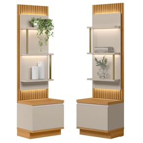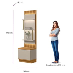 Módulo Lateral Complementar Ripado com LED 1 Porta 3 Prateleiras Paulina