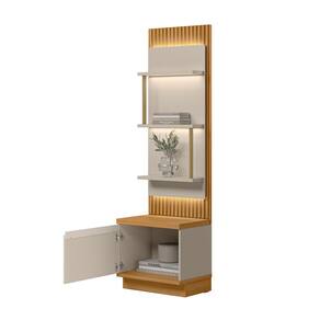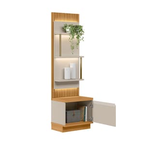 Material: MDP/MDF Tampo: MDP com espessura de 37mm Portas: 1 porta de abrir em MDP Prateleiras: 3 prateleiras em MDP de 25mm Pés: não há Puxadores : 1 puxador de alumínio embutido Luminária: Fitas de Led Dobradiça: 2 dobradiças metálicas Demais acessórios: 2 hastes metálica