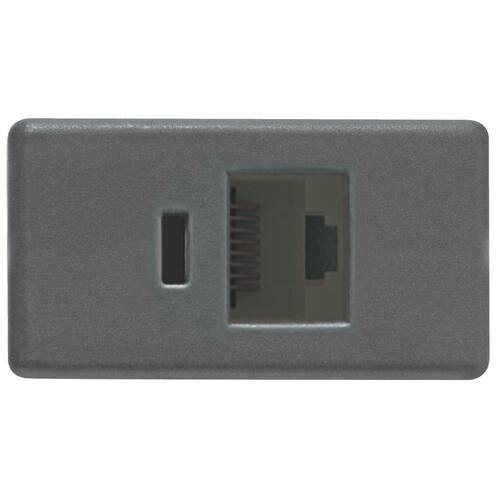 Para instalação de rede de impressoras, modems ou dispositivos multimídia com qualidade, utilize o Módulo para Tomada para Transmissão de Dados RJ45 cat. 6E Tramontina IzyFlat Grafite. Ele é fabricado em termoplástico antichama, vem na cor grafite e conta com acabamento brilho, características que garantem espaços muito mais agradáveis e de qualidade. Ele ainda pode ser trocado pelo módulo de cor branca, dependendo do estilo que você busca em sua casa ou ambiente comercial! Orientações . Observações A instalação e segurança: É importante que o produto seja instalado por profissional habilitado. Antes de instalar, desligue a energia elétrica. Características Gerais EAN13 7891435056839 DUN14 17891435056836 NCM 8536.90.90 Peso Líquido 0,0150 kg. Peso Bruto 0,0200 kg. Metragem 0,000032 m³. Dimensões Embalagem (Compr. X Larg. X Alt.) 40x 20x 40 mm. Dimensões Produto (Compr. X Larg. X Alt.) 45x 24x 35 mm. Cor 1 333333 Hexa