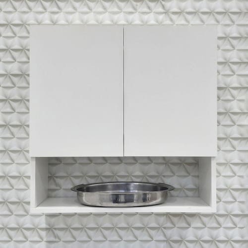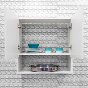 O material é produzido em MDP 15mm com revestimento no Branca, que permite maior durabilidade ao móvel. Não contém puxadores, mantendo um design clean e sofisticado para sua cozinha. Produto possui 2 suportes metálicos na parte de trás para fixação na parede com bucha e parafuso (inclusos).