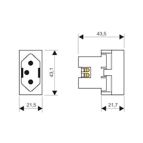 Especificações Gerais do Produto:Dimensões AxLxP (mm): 43,1x21,5x43,5Material: PlásticoGarantia: 5 anos junto ao fabricanteAcabamento: AcetinadoAcompanha Placa: NãoAcompanha Suporte: NãoCorrente Tomada: 10ALinha: HabitatPolos: 2 P + TerraTamanho: 4x2Tipo: Módulo TomadaCertificação: ISO 9001Tensão: 250V~
